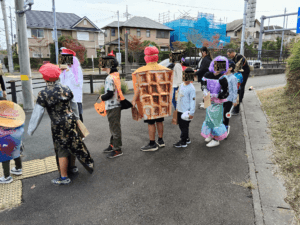 自前の仮装を持ってきた児童、