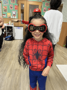 ぽんての仮装を楽しむ児童、