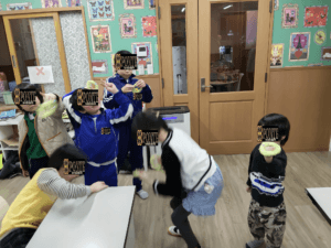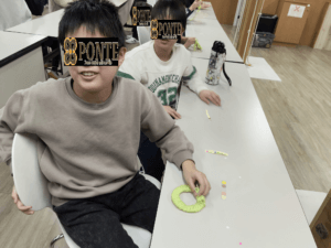 クリスマス🎄リース こんにちは、ぽんてラボの刈部です🎶 今年も早いものであとひと月ですね! そんな今日の1枚✨ こちらの児童、今月がお誕生日で、通所後も持ち帰ってきたお気に入りの帽子を被っていました😉 今日はみんな楽しみクリスマス🎄のリース作りを行いました!🎵 ぐるぐる毛糸を巻き、なかなか難しい作業でしたが、よく頑張って作りました(^^) 最後はシールで遊ぶ子どもたち、笑顔多いひと時でした🎵