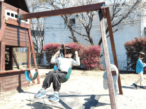 春🌸 こんにちは、ぽんてラボの刈部です🎶 今日はみんな大好き【お外遊び】の日でした! とても暖かく、最高の天気でした☀ お砂場遊びに、 ブランコ、 思い思いの時間を楽しみました✨ こちら鬼ごっこの鬼決めのジャンケン! スタッフも参加しましたが、子どもたちの体力には驚かされます👀 桜の木をバックにピースサイン✌ 今日も1日楽しかったね🎵