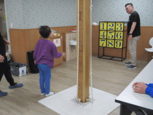 花散らしの雨☔ こんにちは、ぽんてラボの石塚です☺ 今日は雨交じりの強風で あいにくのお天気でした☔ そんなどんより気分を吹き飛ばすかのように 今日のカリキュラムでは ストラックアウトをやりました⚾ 毎回の大盛り上がりです。 今日の上位三名は、パワフルな投球を見せてくれました✨