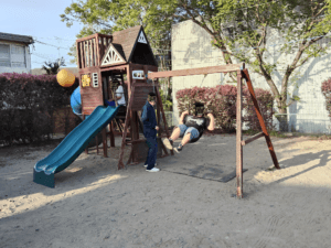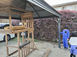 外遊び☀ こんにちは、ぽんてラボの刈部です🎶 今日はみんな大好きお外遊びの日でした☺ お天気、気温も最高のコンディションでした✨ こちらはタケノコを採ってきたようです✨ 他にもボール遊びやブランコと みんな思い思いの時間を過ごしました♪ そして、ラボでは遊具を新調中!現在組み立て中の遊具がみんな気になるようでした😁 今後の進展にこうご期待♬